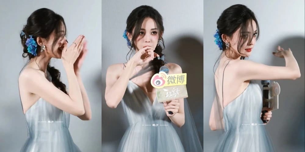 With Hou Minghao absent, the entire promotional event was effectively carried by Guli Nazha alongside the supporting cast. She immediately became the center of attention, appearing in a misty blue, deep-V sheer gown paired with a side braid hairstyle that highlighted her elegant and ethereal beauty. Her striking appearance made her the visual focus throughout the event.