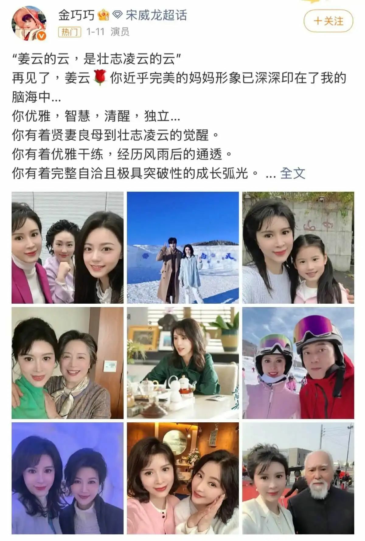 The discussion intensified when Jin Qiaoqiao, the actress who played Zhao Jinmai’s mother in Shine On Me, joined in. In a farewell post for the drama, Jin Qiaoqiao shared several photos with Zhao Jinmai, referring to her as her “daughter” in the story, as well as photos with Song Weilong, who portrayed Lin Yusen.