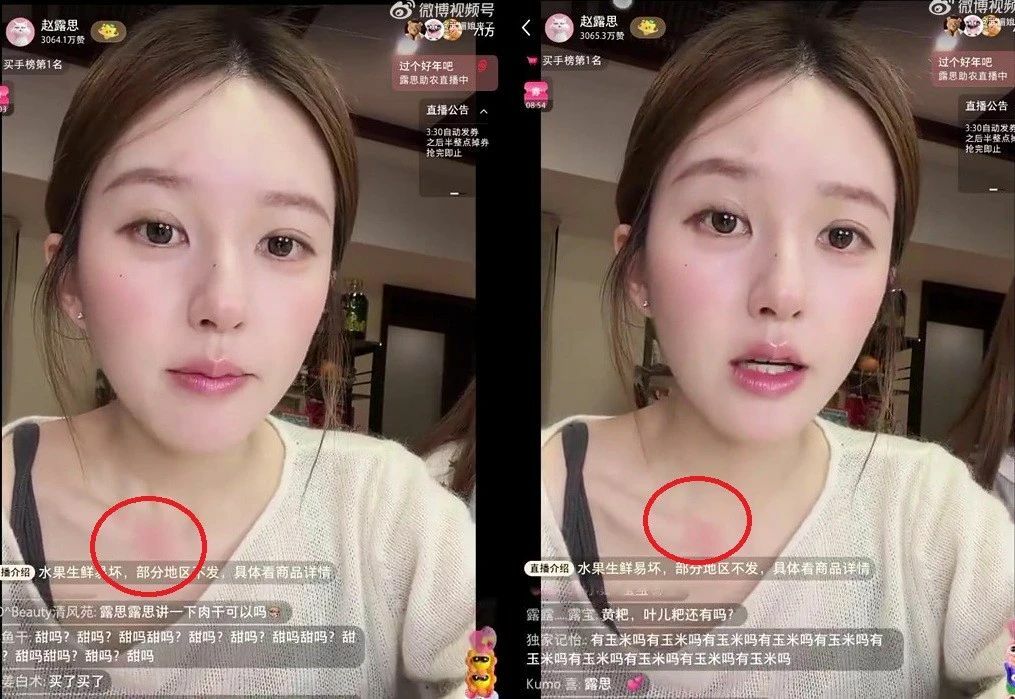 To prove the authenticity of the product, Zhao Lusi consumed the honey without hesitation, live on camera. Fans strongly suspect that the white patches on her neck are the resulting allergic reaction from this act of professional sacrifice. Reports indicate the allergic reaction has persisted for over ten days and has not fully healed, drawing public sympathy for her dedication.