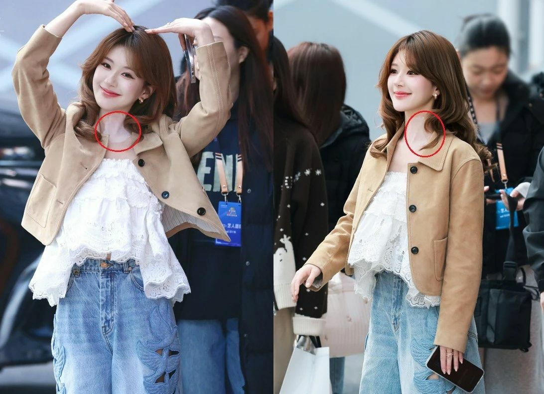 Unfortunately, sharp-eyed netizens noticed a physical irregularity: large white patches or lesions were clearly visible on Zhao Lusi’s neck. This immediately sparked speculation that she was suffering from a severe allergy.