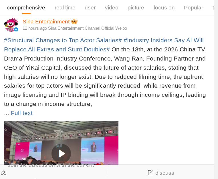 Beyond the issue of actor compensation, Wang Ran also discussed the growing impact of artificial intelligence on the entertainment industry. He suggested that AI technology could significantly reshape job structures across film and television production.