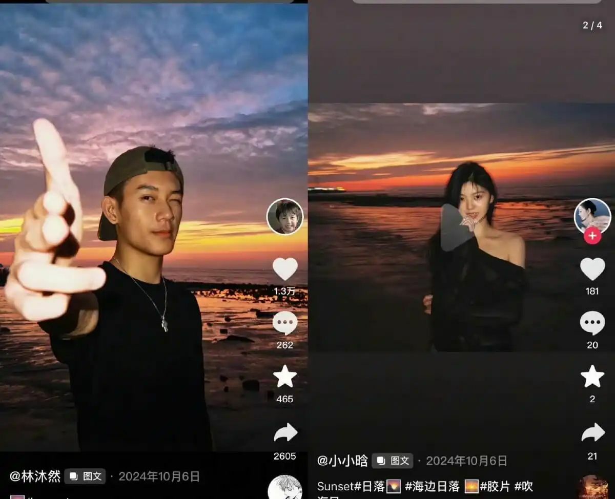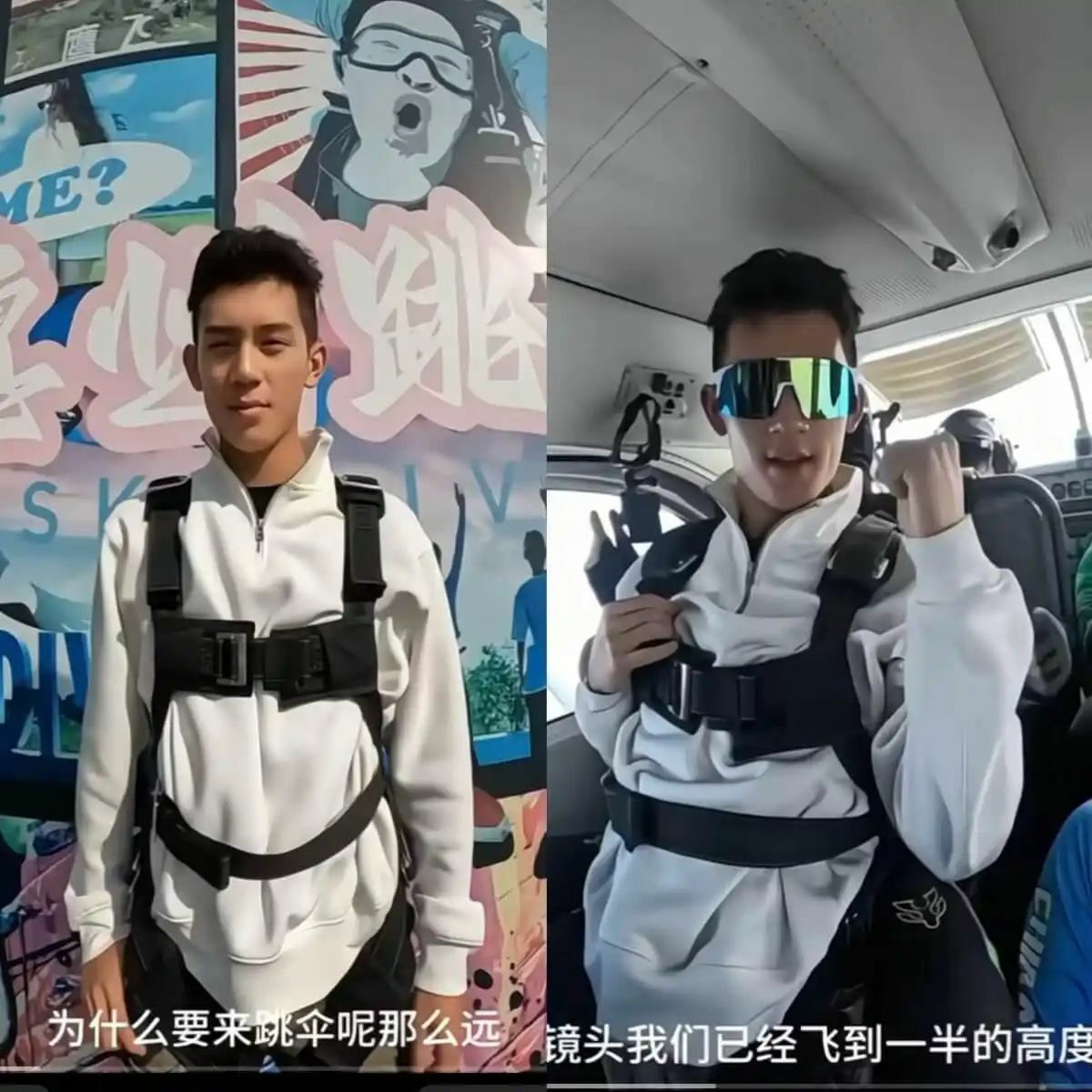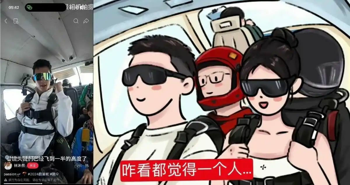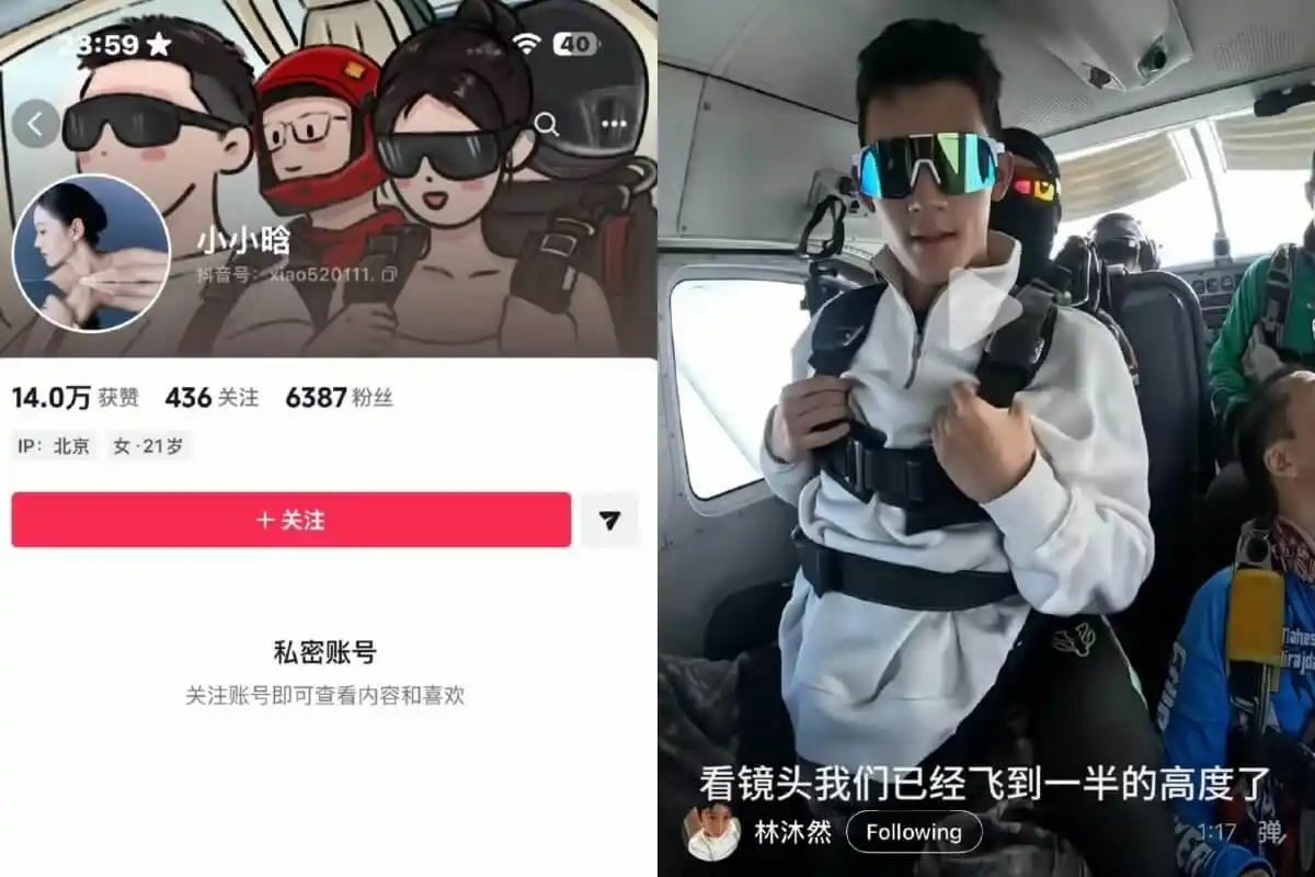Digital sleuths have pointed to matching travel photos from Guangxi and a skydiving trip in December 2024 where the backgrounds and timing appear to be perfectly synchronized.