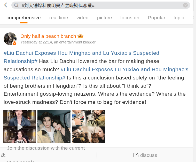 Several verified accounts also backed this up, noting that in Liu Dachui’s original livestream, neither Hou Minghao nor Lu Yuxiao were mentioned at all. This raised suspicions that their names had been forcibly linked to unrelated content.